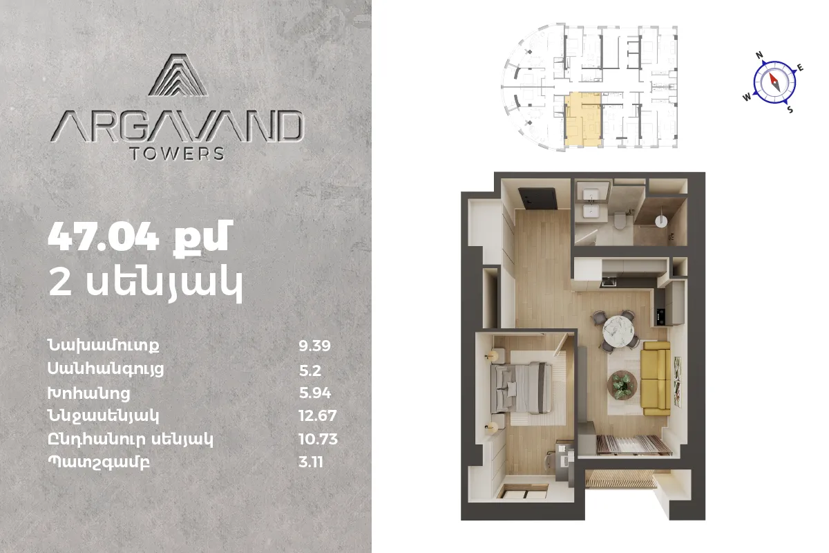1 մ-շ | 2 հարկ | 47 քմ | 2 սենյակ