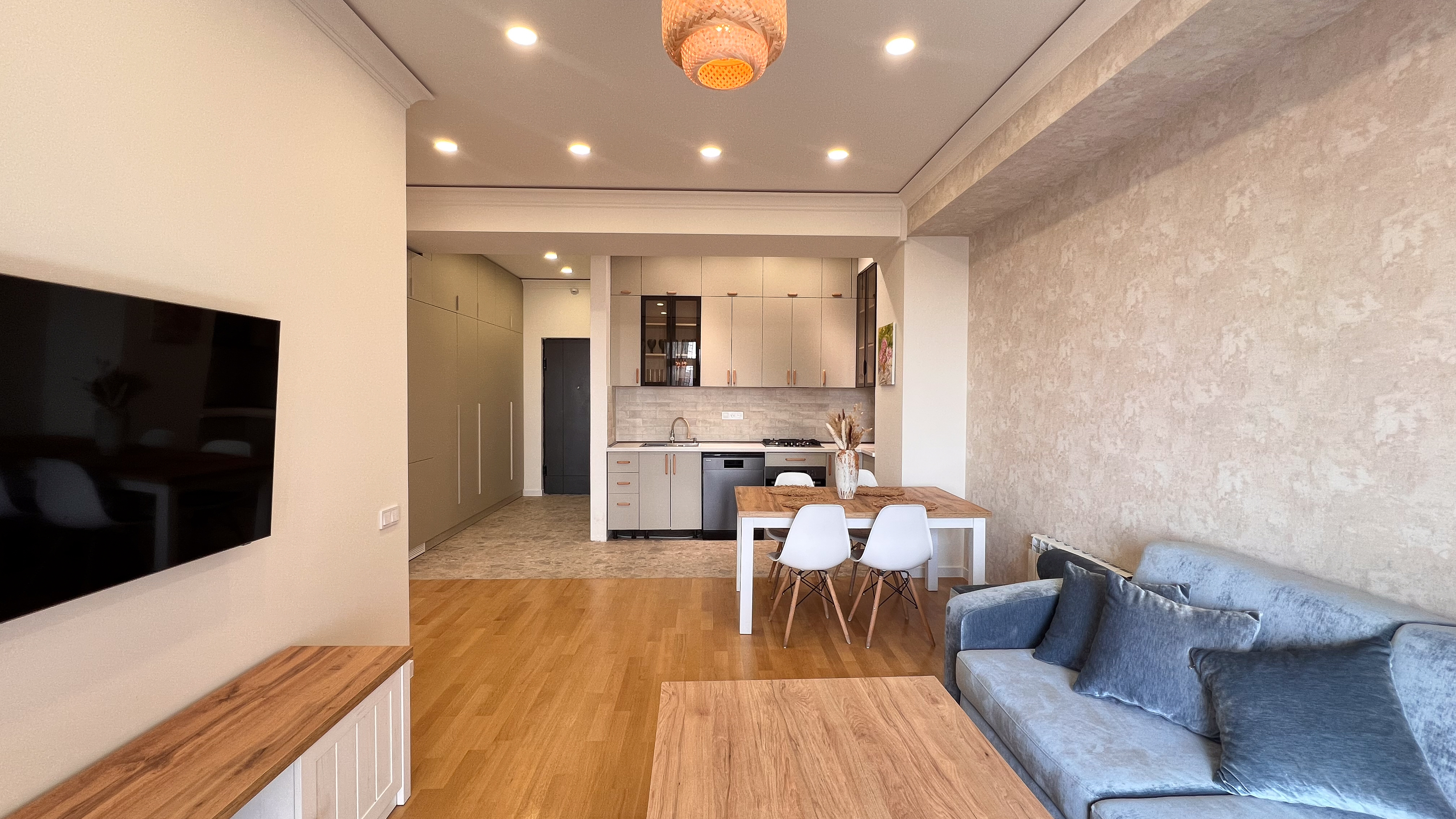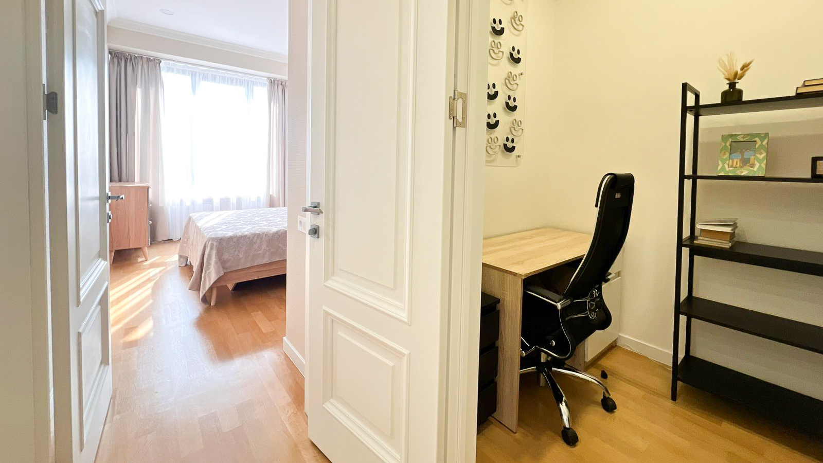 Բնակարանը վերանորոգված է ժամանակակից ոճով՝ որակյալ նյութերի կիրառմամբ։ Լուսավոր, ջերմ և հարմարավետ միջավայր։ Ունի նաև փոքրիկ աշխատասենյակ։