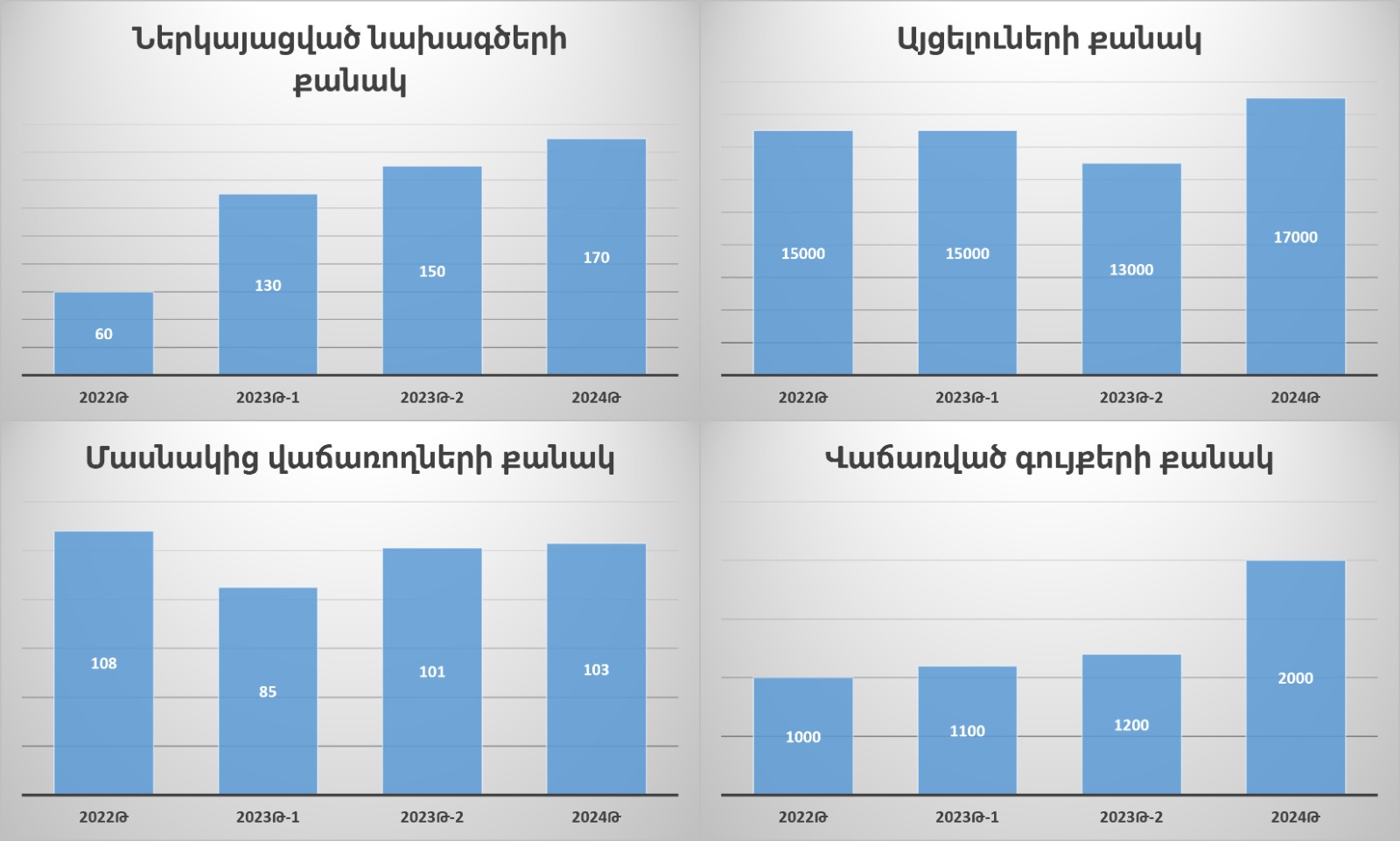 Ստորև ներկայացվող գծապատկերում հայաստանյան էքսպոյի ամփոփ վիճակագրությունն է․