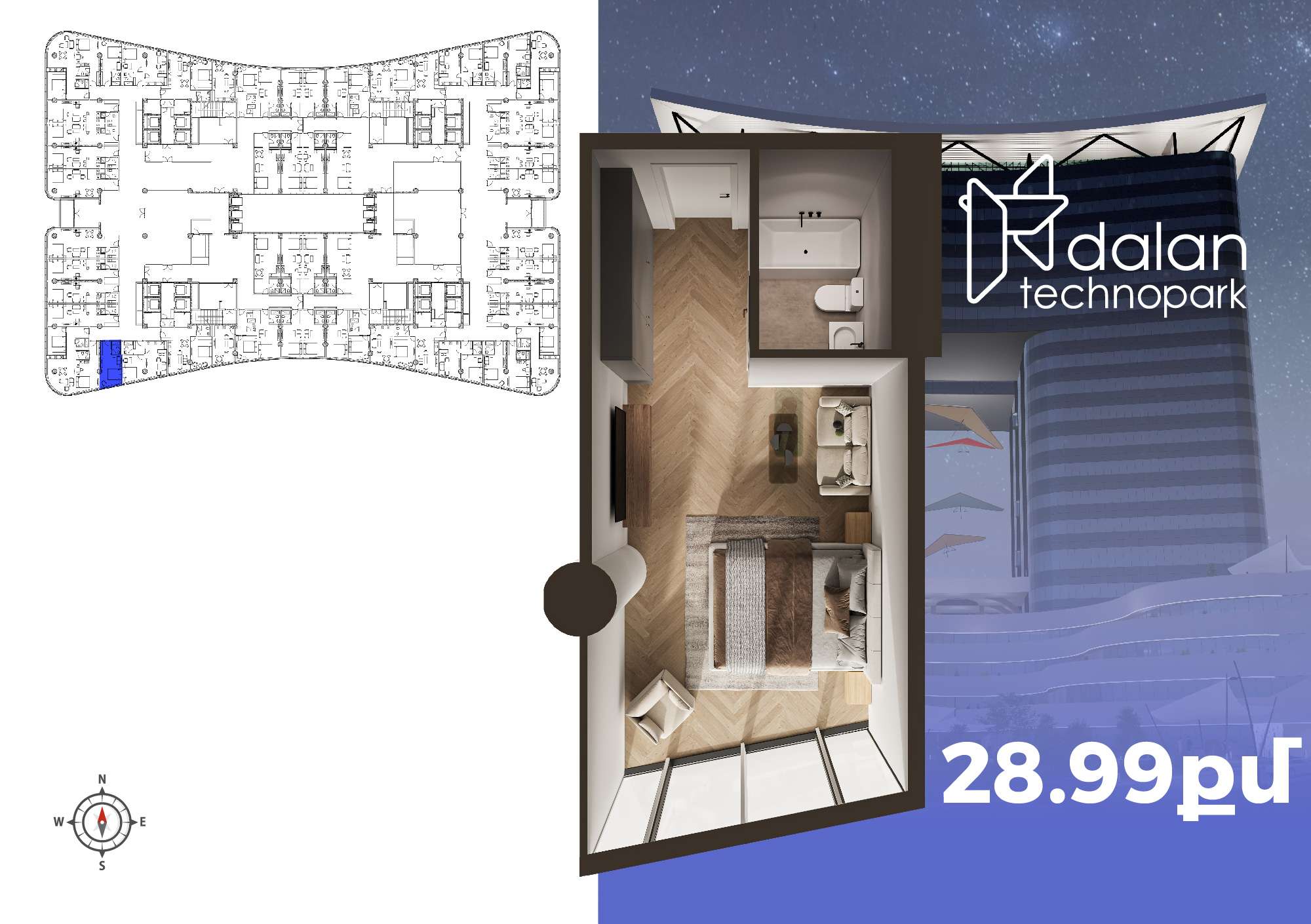 1 մ-շ | 1 մուտք | 14 հարկ | 29 քմ | 1 սենյակ