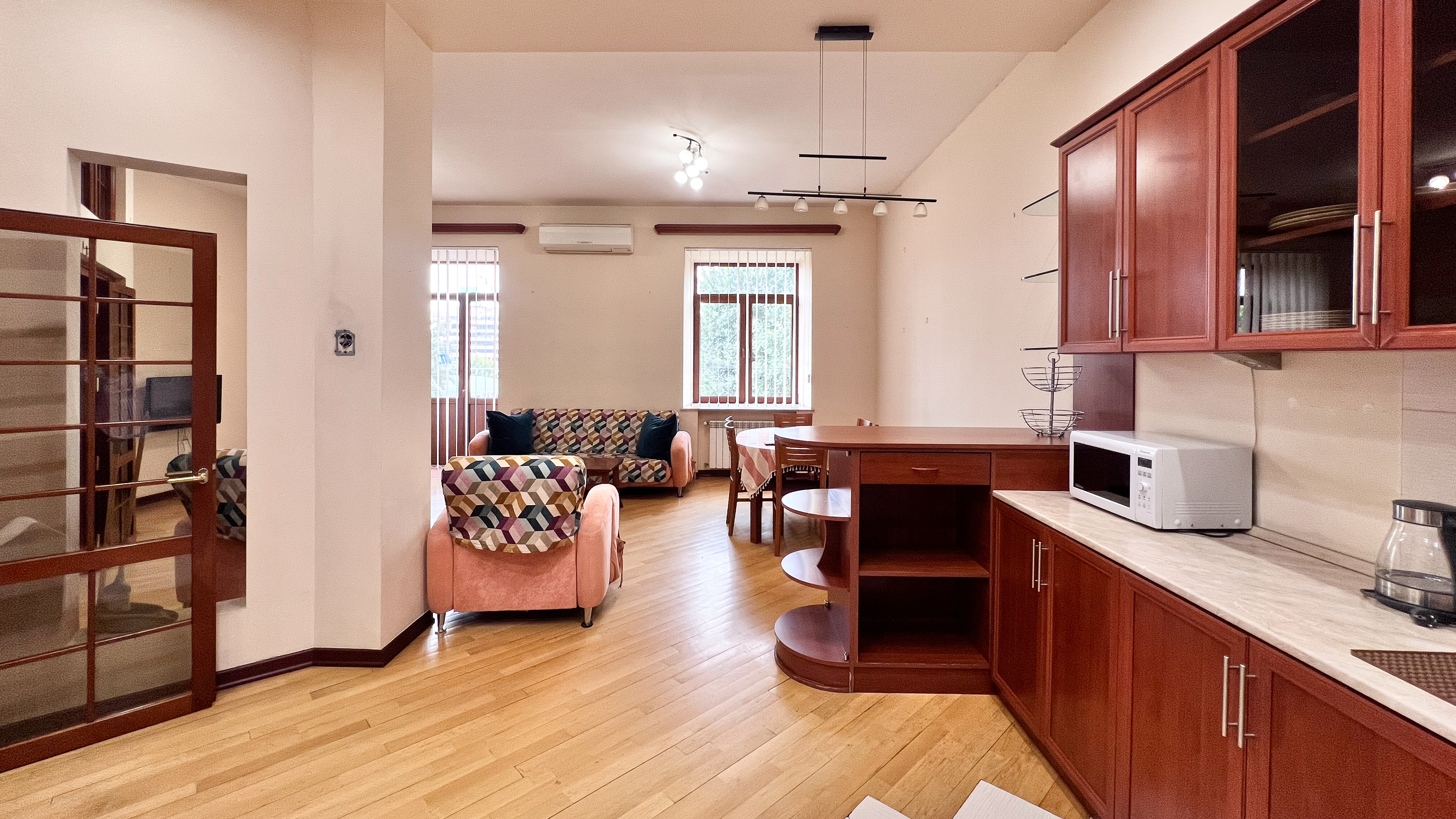 Բնակարանն ունի լավ/կապիտալ վերանորոգում: Ջեռուցվում է անհատական ջեռուցման համակարգով , արևկող է: Առկա է բաց պատշգամբ, շքապատշգամբ:: Բնակարանում կա բնական գազ, գազօջախ, սառնարան, լվացքի մեքենա, հեռուստացույց, օդորակիչ, ինտերնետ: